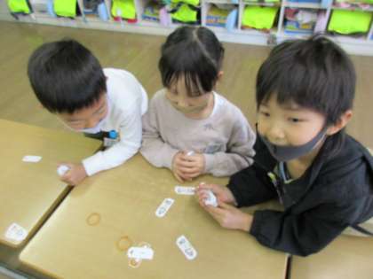 今日は、計算カードを使って、友達と数の大きさ比べゲームをしました。頭の中で計算するのも昨日より上手になりました。