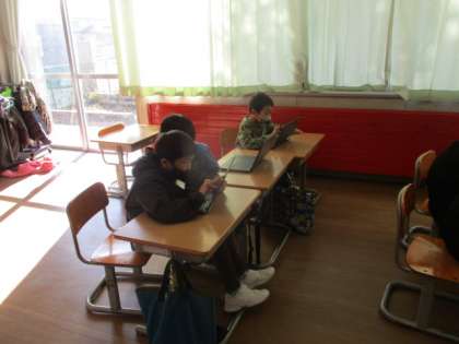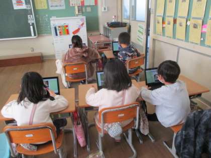 タブレットを使って、先月行われた読書フェスティバルのアンケートに答えました。余った時間で学校のホームページを見ました。