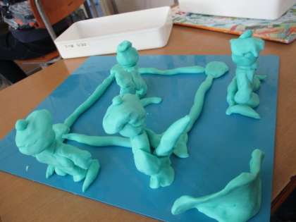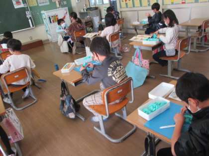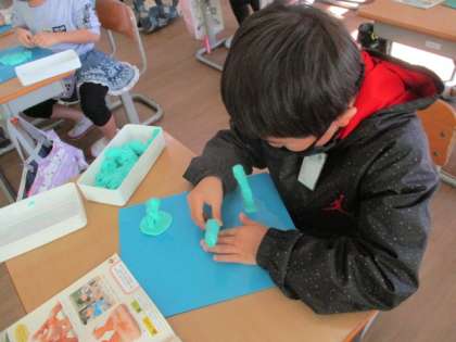図工の学習で粘土を使って思い出を形にしました。