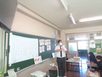 週に1回、ALTとの外国語科の学習を進めています。お店で注文する尋ね方、値段を尋ねる表現など慣れ親しんでいる姿が見られます。