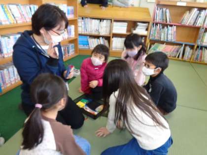 【1年生】読み聞かせとしおり作り 公開日 2021/12/06 更新日 2021/12/06 1年生 なかよしタイムに図書室で英語の本の読み聞かせとしおり作りのイベントがありました。『はなのみち』の英語バージョンのお話を聞いたあと、可愛いしおりを作りました。イベントは明日までです。