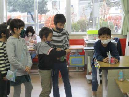 生活科の学習で1組さんがおもちゃランドに招待をしてくれました。