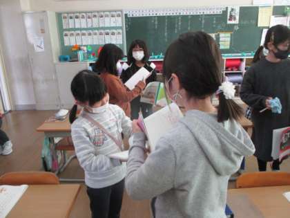 国語の学習で、「わたしはお姉さん」の感想を友達と交流しました。同じ物語を聞いていても、一人一人もつ感想は違います。今日の授業を通してそれらを実感できたようです。