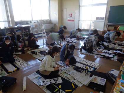 6年生は「心に太陽」と書きます。一文字一文字、真剣に書いています。