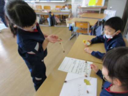 今週の金曜日は「1ねん2くみ あきまつり」の本番です。当日に向けて、遊び方のルールを考えたり、景品を作ったりと、一生懸命準備を進めてきました。今日は、本番前のリハーサルを行いました。