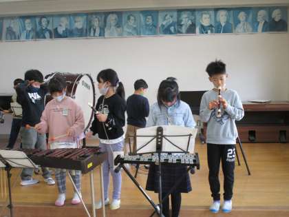 音楽科では、「ゆかいな木きん」の合奏に取り組んでいます。