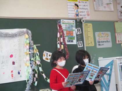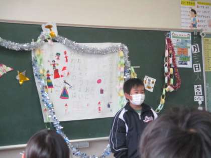 2学期最後のご褒美集会をしました。クリスマス間近ということで名前を変えて行いました。