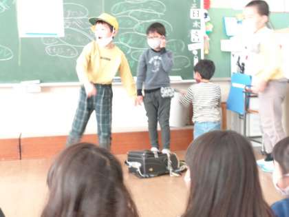 有志4名によるお笑いの後、しりとり爆弾ゲームをしました。爆弾が爆発した人は、2学期の思い出を一つ発表しました。「ああ、あったねえ!」とみんなで2学期を振り返りました。