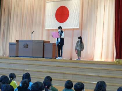 1年で最も長い82日間の2学期が終わりました。終業式では、4年生と1年生が代表して2学期を振り返った作文を発表しました。できることをどんどん増やした実りの多い2学期でした。健康と安全に気を付けて、楽しい冬休みを過ごしてください。