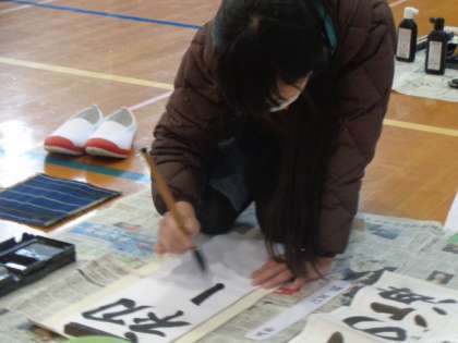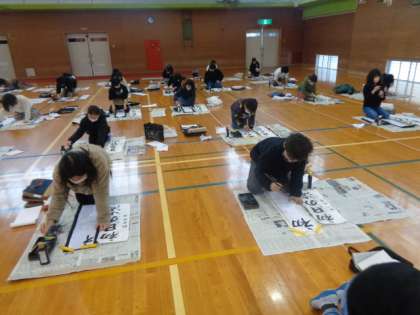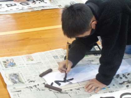 始業式の後に、体育館で書初大会をしました。冬休みの練習の成果を発揮しようと、集中して取り組む姿が見られました。みんなの努力する姿勢が素敵でした。