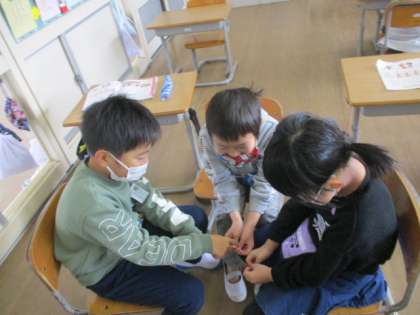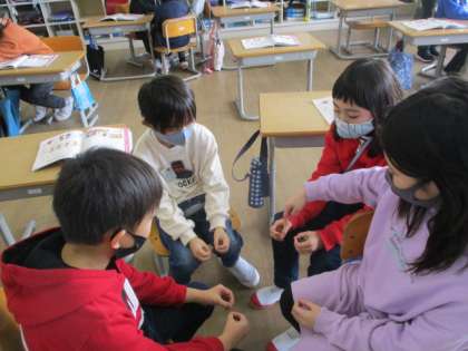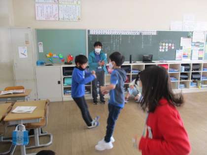 音楽の学習で、2学期までに学習した歌を歌ったり、歌に合わせて遊んだりしました。3学期は「子ぎつね」からスタートします。友達と一緒に歌ったり演奏したりして楽しんで学習していきましょう。