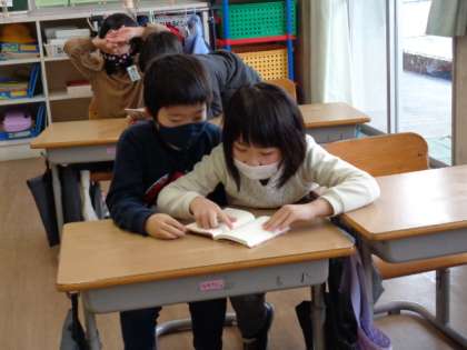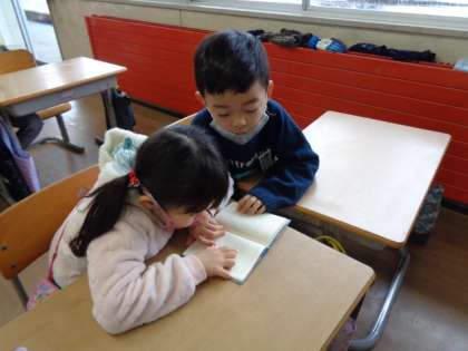教科書の「かたつむりでんきち」「こぐまきょうこ」さんだけでなく、詩集「のはらうた」にはたくさんの野原の住人たちの詩が載っています。今日はペアでのはらうたを読み、お気に入りの詩を見付けました。子供たちは楽しみながら詩と親しんでいました。