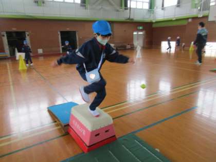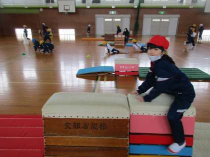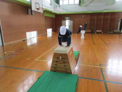 前回よりも、手で体を支えたり、押して前に進んだりするのが上手になりました。ジャンプして跳び箱に跳び乗る姿も、だんだんとかっこよくなってきました。次回もがんばりましょう!
