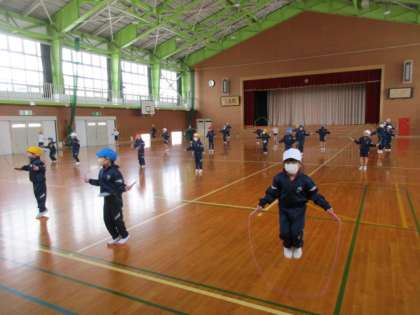 今日は、短縄跳びで1分間引っかからずに跳び続けることにチャレンジしました。前跳びや後ろ跳びだけでなく、かけ足跳びやあや跳びにも挑戦しました。最後まで残った子供たちは、先生からシールをもらえます。次回も頑張りましょう!