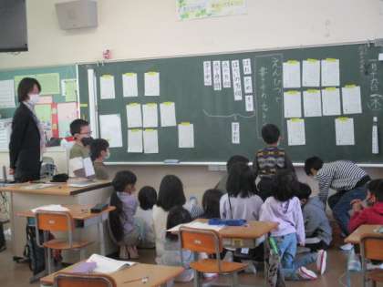 硬筆で書き初めを行い、友達の作品を鑑賞しました。