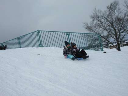 冬を楽しもうと、雪遊びをしました。そりで滑ることがとてもおもしろく、みんなの喜んだ声が響いていました。