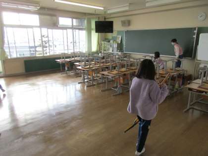 5年生 縦割り清掃 公開日 2022/01/26 更新日 2022/01/26 5年生 縦割り班での清掃が始まりました。 5年生は、自分がしっかり清掃することはもちろん、下学年の子にも声かけできるようにがんばっています。