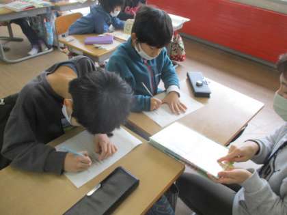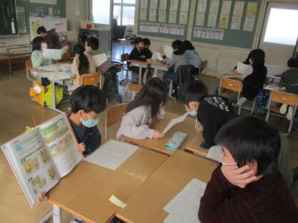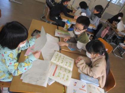 国語科で、情報の学習の一環として、本で、おにごっこやほかの遊びについて調べ、友達に紹介しました。