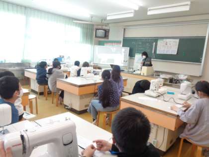 家庭科では、ミシンを使って縫うことに挑戦しています。ミシンに慣れようという目当てに向かって、意欲的に取り組んでいました。日々の学習で、ミシン縫いの力を付けていきましょう。