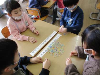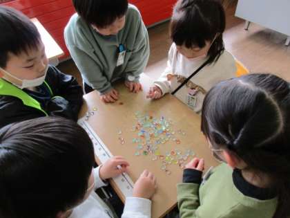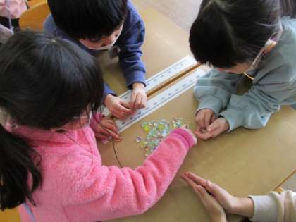 生活科の時間に「おはじき」を使った遊びを楽しみました。初めておはじきで遊んだ子もおり、想像していたよりも楽しかった!とまだまだ遊び足りない様子でした。おはじきがあるご家庭は、ぜひお子さんと一緒に遊んでみてください。