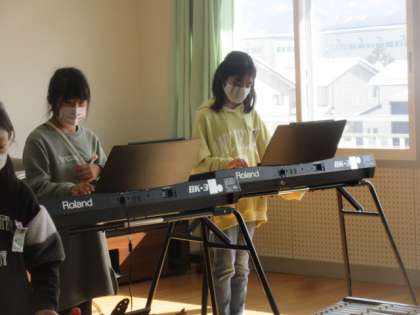 音楽では、自分の好きな楽器を選んで、「茶色の小びん」を演奏しています。