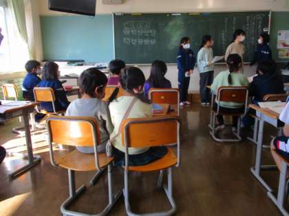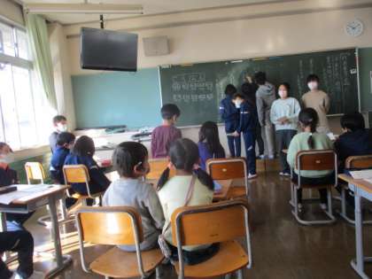 なかよしタイムに6年生を祝う期間についてクラス代表の人たちで話し合いがありました。2年生からも代表児童がクラスの意見を堂々と発表していました。
