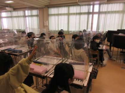 4年生 音楽 公開日 2022/02/10 更新日 2022/02/10 4年生 音楽では、茶色の小ビンを合奏している様子をクロムブックで撮影しました。その動画をみながら、よいところやもっとよくなるためにはどうしたらよいかを考えました。