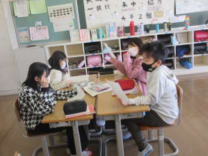 4年生 国語 公開日 2022/02/10 更新日 2022/02/10 4年生 国語では、文章のつながりについて勉強しています。一文を短くしたり、つなぎ言葉を加えたりしながら、相手に分かりやすく伝えるためにどうしたらよいかを話し合いました。