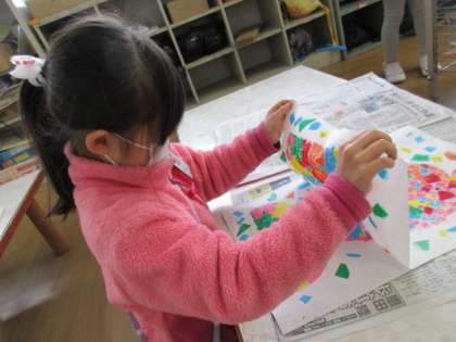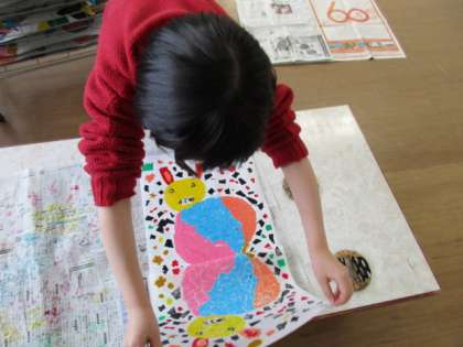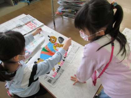今日は先週の続きで、残りの子供たちが版画を刷りました。子供たちは、めくった瞬間の版画を見て嬉しそうな表情をうかべていました。
