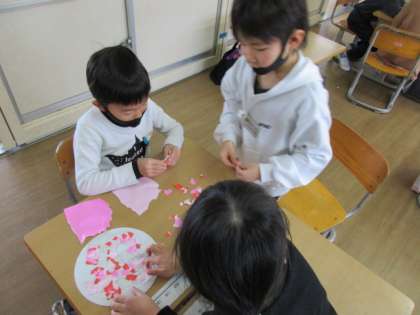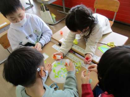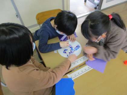今日は、卒業をお祝いする掲示に添える「おめでとう」の文字をグループで協力して作りました。6年生さんに喜んでもらえるといいですね。