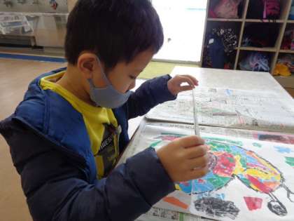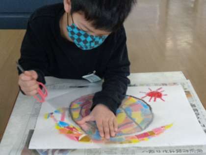1年生全員が、最後の工程「刷り」を終えました。どの子の作品もカラフルでとても素敵です。互いに見合うのが楽しみです。