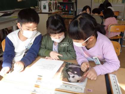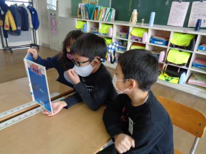 グループの友達と、いろいろな動物の赤ちゃんについて調べました。文章も多いですが、みんなで音読して、初めて知ったこともたくさんあったようです。