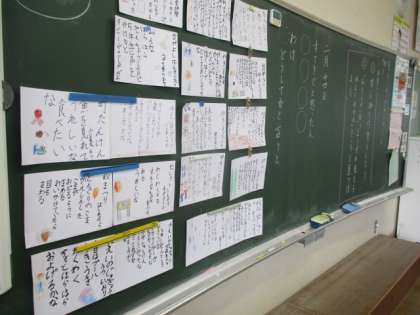 2年生を振り返って、楽しかったことや思い出に残ったことを詩で表現しました。今日は、作った詩を発表しました。