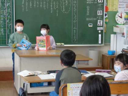 【1年生】これは何でしょう 公開日 2022/02/16 更新日 2022/02/16 1年生 国語の学習で「これは何でしょう」の学習に入りました。「細長い」「天井に付いている」 答えは何か分かりますか?子供たちは上手に少しずつヒントを出しながらクイズを作っていました。ちなみに答えは「電気」でした!