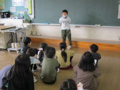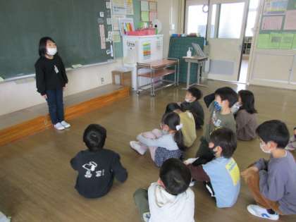2組のはなまるビー玉がたまったので、はなまる集会を開きました。今回は、「大根抜き」と「宝探し」をしました。