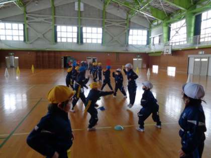 今日は相手を交わしてタグを守る走り方等を練習しました。子供たちは楽しそうに体を動かしていました。