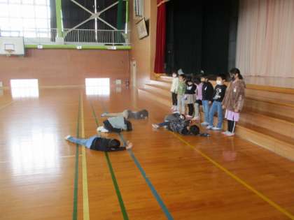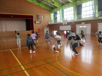 「だるまさんがころんだ」では、寝た、座った、勉強をしたなどいろいろなバージョンがあって子どもたちは全身を使って表現していました。