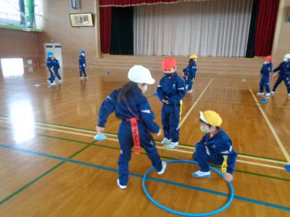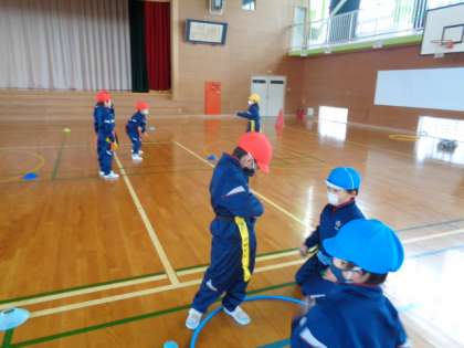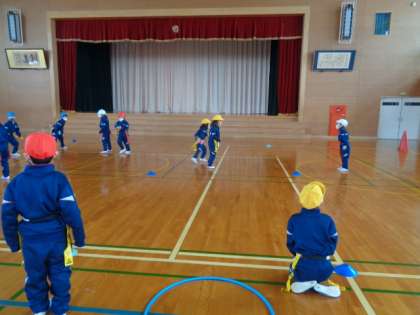 今日は初めて「宝運び鬼」のゲームをしました。子供たちはルールを確かめながら楽しく運動していました。