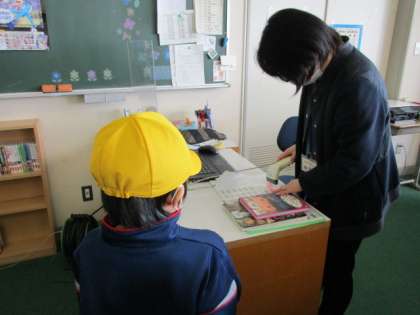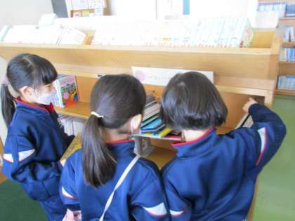 毎週金曜は、図書室で本の借り換えをしています。みんなお気に入りのシリーズがあったり、好きなジャンルがあったりと、思い思いに本を選んでいます。