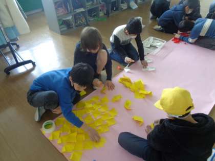 卒業を祝う期間に向けて、掲示や縦割遊びなどの計画を立てています。6年生さんが喜んでくれるといいですね。
