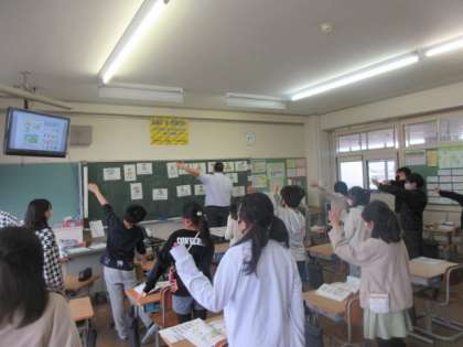 4年生 外国語活動 公開日 2022/03/01 更新日 2022/03/01 4年生 ALTの先生の話を聞きながら、どのようなお話か考えています。また、何時にどのようなことをしているのかを聞き取ろうと真剣に聞いていました。