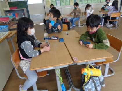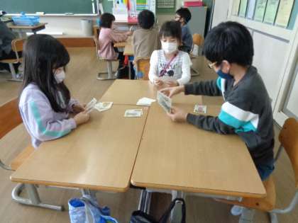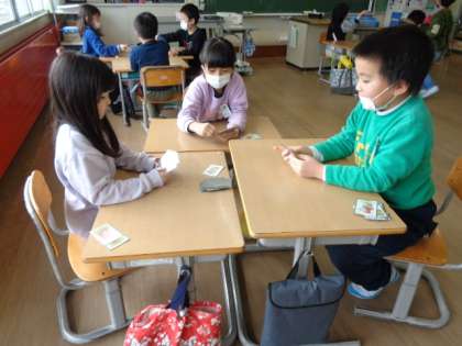 今年度最後の席替えをしました。新しい班の友達とカードゲームをしました。