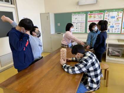 4年生さんが様々な企画を考えてくれました。日頃あまりしない遊びもでき、笑顔がたくさん見られた6年生でした。