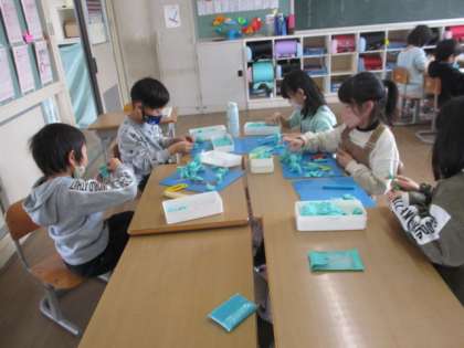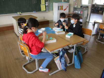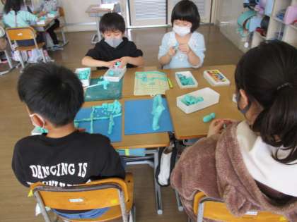 粘土を使ってグループの友達と協力して、自分たちの動物園を作りました。