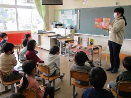 婦中図書館から、2名の方が本の紹介や読み聞かせをしに来てくださいました。