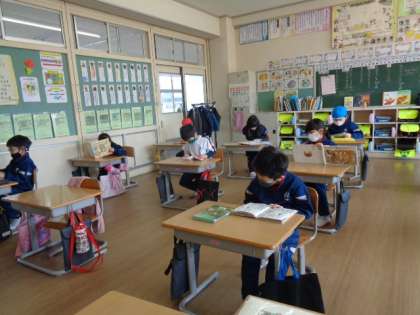 【1年生】本読みタイム 公開日 2022/03/11 更新日 2022/03/11 1年生 図書室で本を借り換えた後、静かに集中して本を読む子供たちです。1年間でずいぶん自分で読む力が育ちました。週末の宿題に絵本の音読を出しました。家でも読書の時間を大切にしてください。