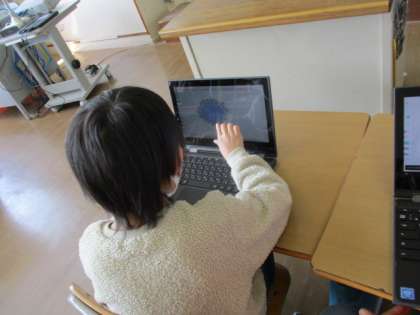 タブレットで、メモを取ったり、絵を描いたりする方法を学習しました。早速使いこなしてすてきな絵を描いていました。