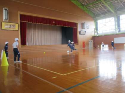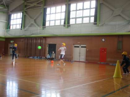 ボール蹴りゲームで前回は、作戦を立ててシュート練習をしました。今日は、作戦を基にして試合をしました。
