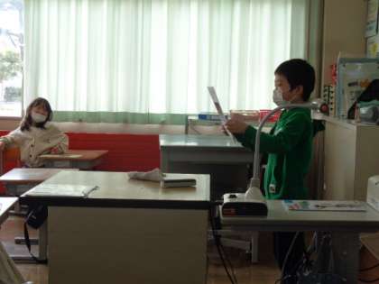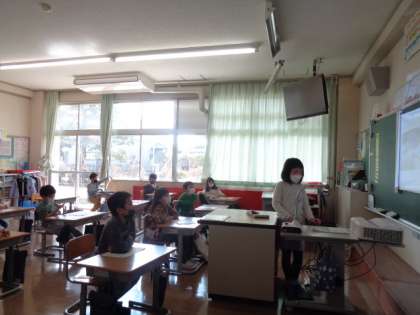 今日は、生活科「家族にこにこ大作戦」での各自の取組をみんなに発表しました。友達がおうちで一生懸命仕事している写真を見ながら、子供たちはとても興味をもって聞いていました。おうちの方からの温かいお手紙にも心を動かされ、「大作戦が終わっても仕事を続けたいな」「今度は○○ちゃんがしていた仕事をしてみたい」と意欲をもった子供たちがたくさんいました。保護者の皆様、学習へのご協力ありがとうございました。