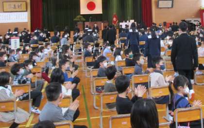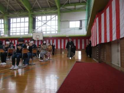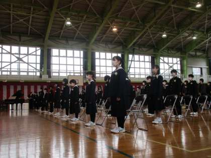 卒業式、入場です。胸を張って、堂々と入場していました。立っているときの姿勢も凜としてかっこよかったです。